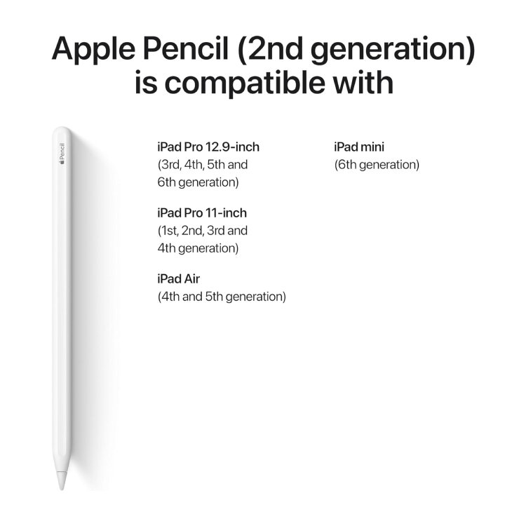 CANETA APPLE 2ND GEN MU8F2ZM/A (iPad Pro de 12,9 polegadas (6, 5, 4 e 3 geração); iPad Pro de 11 polegadas (4, 3, 2 e 1 geração); iPad Air (5 e 4 geração); iPad mini (6 geração))