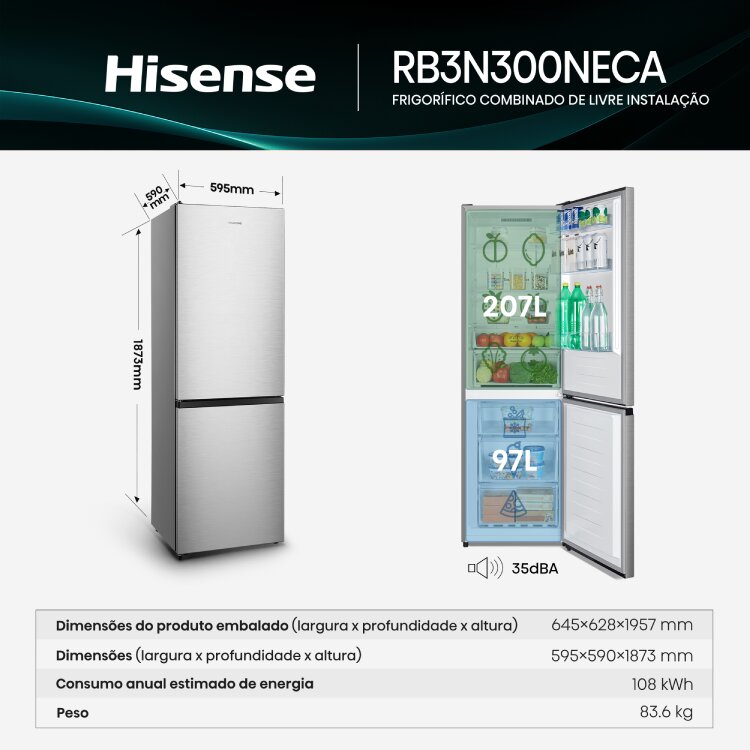 COMBINADO HISENSE RB3N300NECA (No Frost, 187,3 cm, 304 Lt, Look Inox)