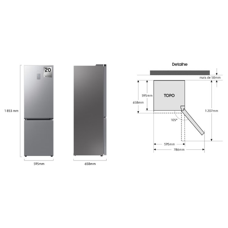 COMBINADO SAMSUNG RB34C671DS9/EF (No Frost, Altura 185,3 cm, Capacidade Liquida 344 Lt, Inox)