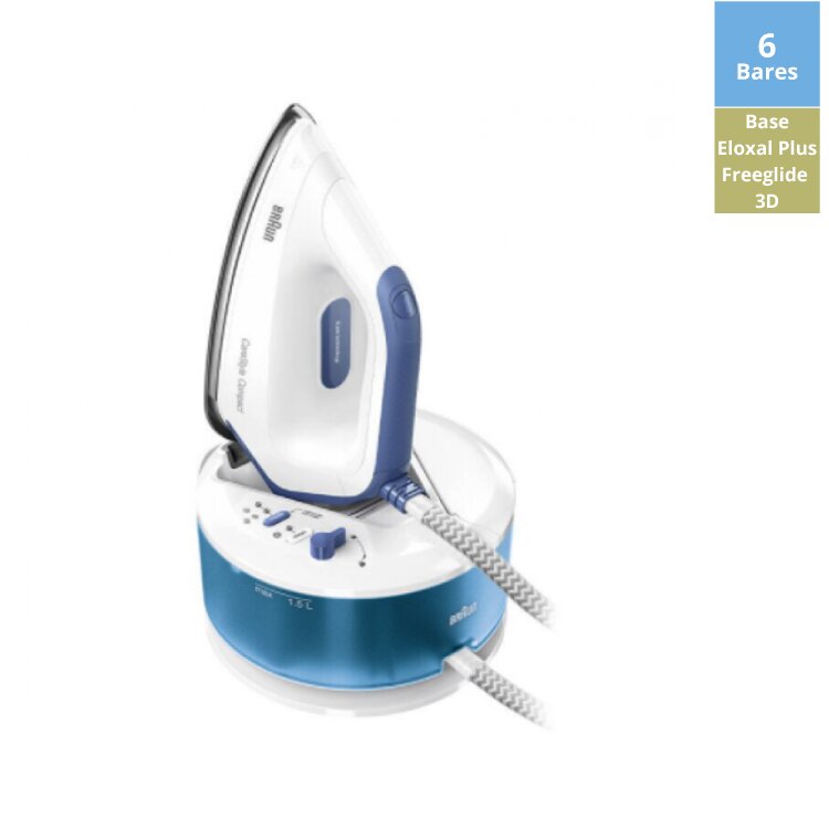 FERRO CALDEIRA BRAUN CARESTYLE COMPACT IS2143BL (Potência 2200 W, Eloxal Plus Freeglide 3D (bidirecional), Pressão do Vapor 420 gr/min, Pressão do Vapor (BAR) 6 Bares)
