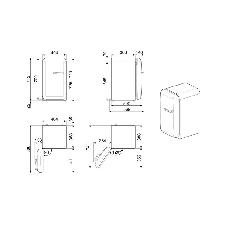FRIGOBAR SMEG ANNI 50 FAB5LPG6 (72,5 cm, 34 Lt, Verde água)