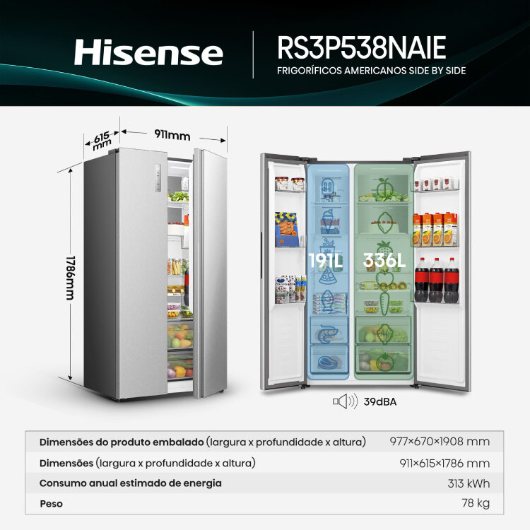 €1199,99FRIGORÍFICO AMERICANO HISENSE RS3P538NAIE
