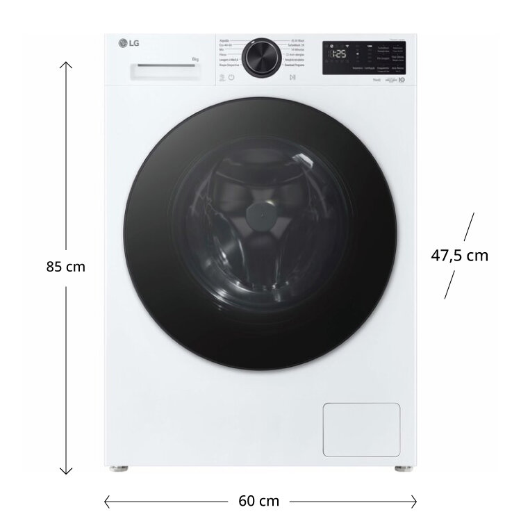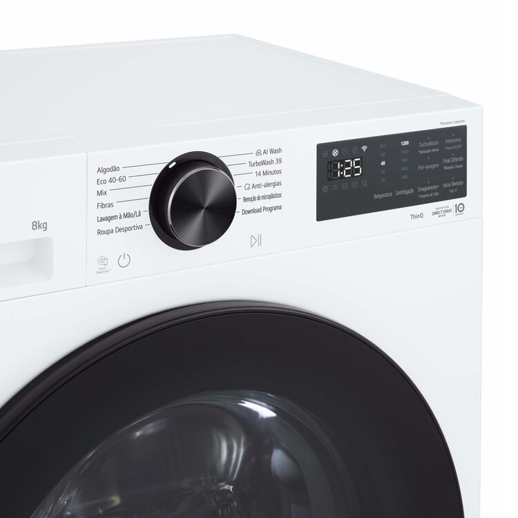 MÁQUINA LAVAR ROUPA LG F2X50S8TLB (8 Kg, 1200 rpm, Branco, A-30%; Motor Inverter Direct Drive)