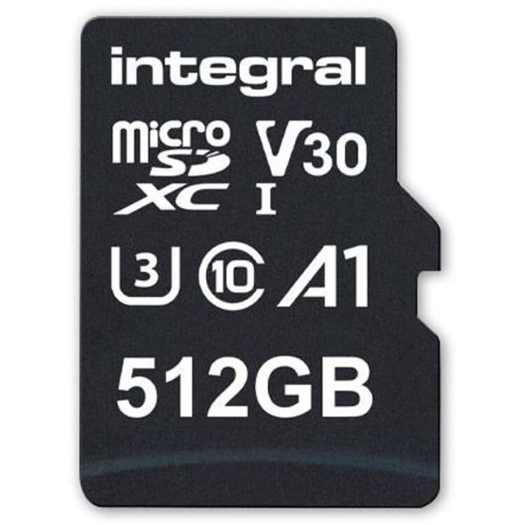 MEMÓRIA MICRO-SD INTEGRAL 512GB 100MB (Micro SD, 512GB, Velocidade de Leitura - 100MB/s; Velocidade de Escrita - 45MB/s)