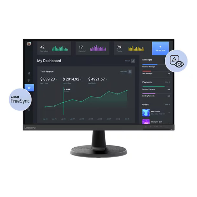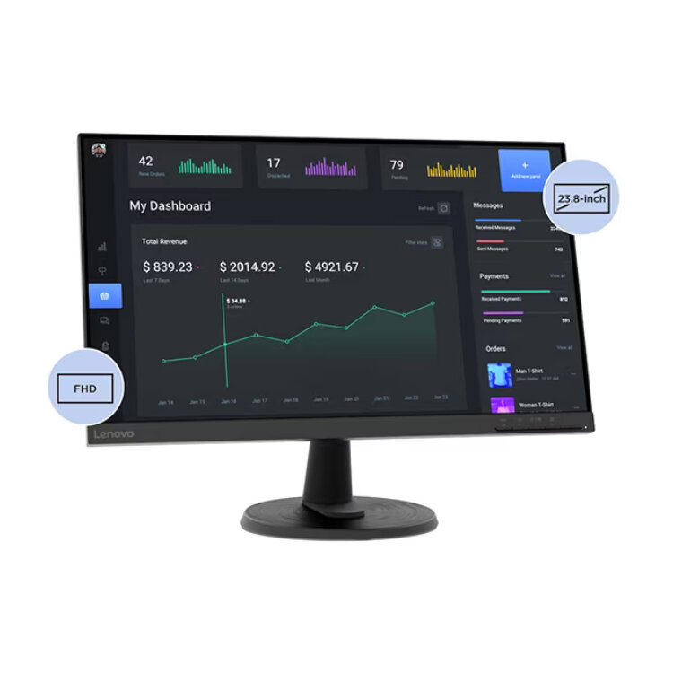 MONITOR LED LENOVO 24” D24-40 (1920 x 1080 (Full HD), Taxa de atualização 75 Hz, Tempo de Resposta 7 ms, HDMI, VGA, 3.5 mm)