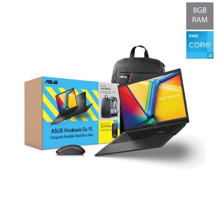 €549,99PC PORTÁTIL ASUS E1504GA-32BDLP2 PACK (Intel Core i3, 512 GB, Memória RAM 8 GB, Intel UHD Graphics, WINDOWS 11)