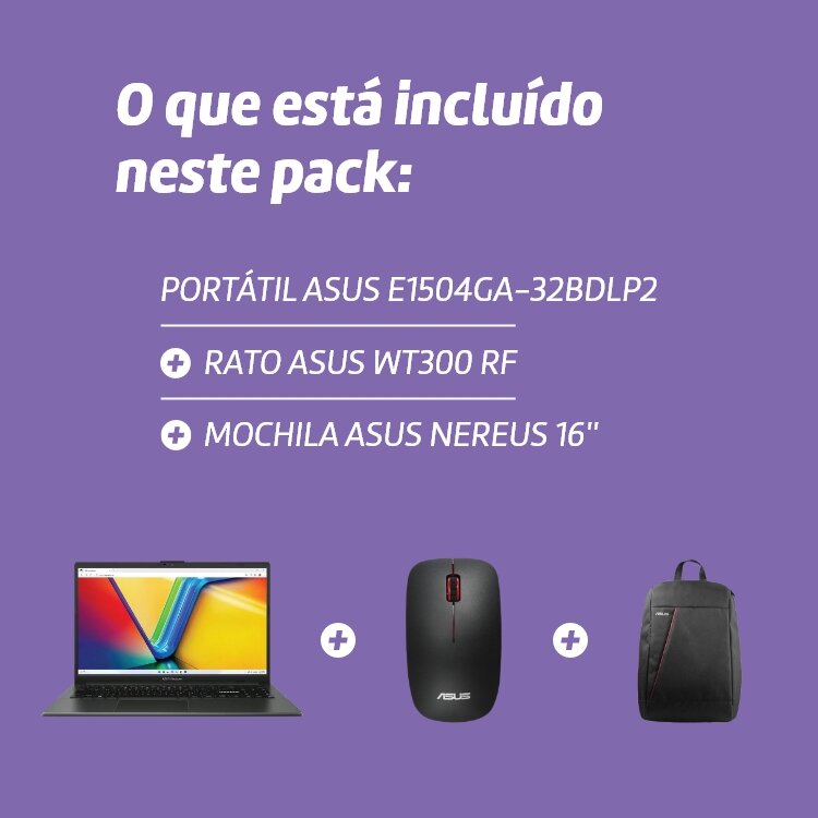 Claro que sim! Este pack traz todos os acessórios que precisas: a mochila Asus Nereus 16" para o transporte seguro do portátil e o rato Asus WT300 RF para uma utilização mais confortável e produtiva no dia a dia.