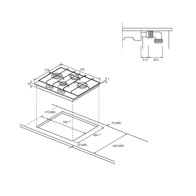 PLACA GÁS HAIER HAHG6D5TX (5000 W, 59,5 cm)