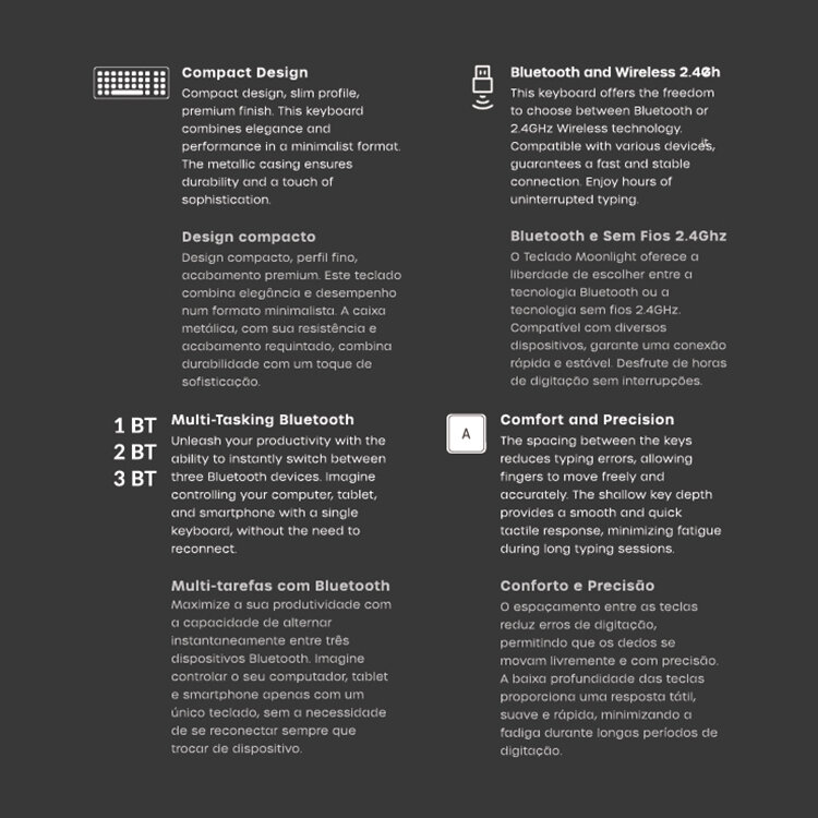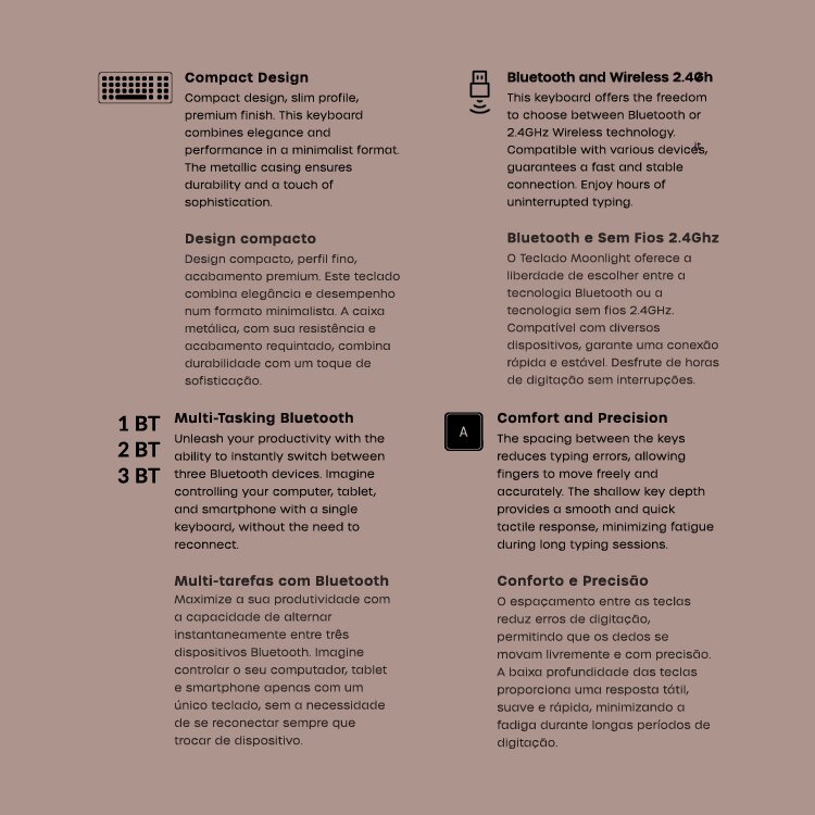 TECLADO + RATO TECH FUZZION MOONLIGHT WIRELESS (USB-A, Bluetooth; Wireless, 250 Hz)